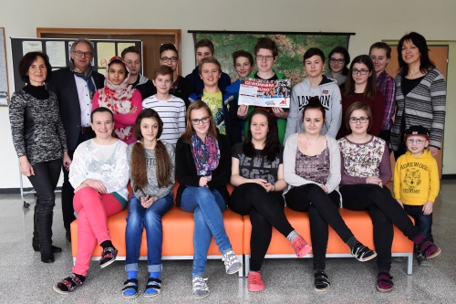 Arbeiterkammer, Wirtschaftskammer und Land veranstalten jedes Jahr im Herbst in Wels die Berufsinformationsmesse „Jugend & Beruf“. Am Stand der AK gab es auch dieses Mal wieder ein Gewinnspiel mit Fragen zur Arbeitswelt. Die 4A-Klasse der Neuen Mittelschule (NMS) Lembach konnte mit ihrem Wissen punkten und gewann damit für beide vierte Klassen eine Fahrt ins Welser „Welios“. Der Preis wurde jetzt durch Franz Pernerstorfer von der Arbeiterkammer überreicht. Das vielfältige Informationsangebot auf der Messe, das den Schülerinnen und Schülern die Berufsorientierung wesentlich erleichtert, wurde von der Klasse sehr gelobt. Auch 2016 wird es wieder eine Messe geben. |