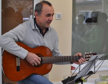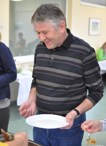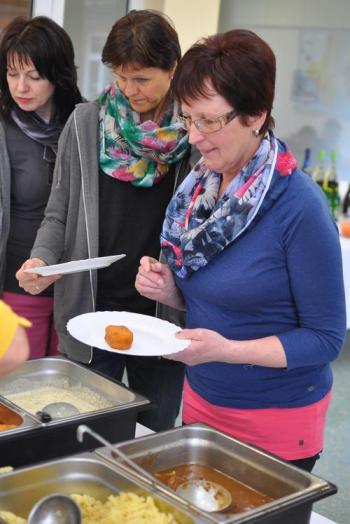 Nach dem sehr köstlichen Essen, zu dem Frau Reiter die KollegInnen einlud, warteten einige Überraschungen auf sie, z.B. Geschenke, Blumen, Musik und Gedichte. |