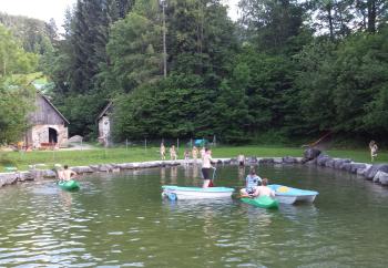 „Obwohl der Badesee hinter dem Lindenhof sehr seicht war, hatten wir großen Spaß beim Bootfahren und Plantschen.“ (Manuel Reiter) |