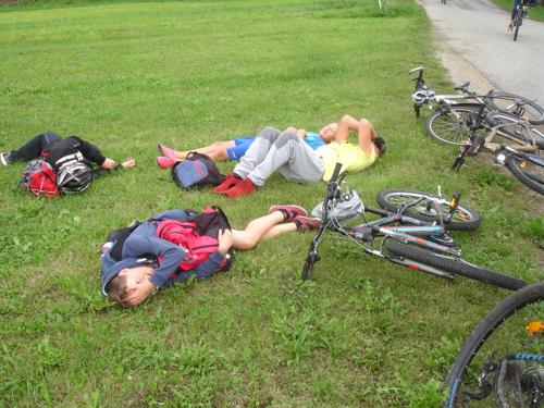 Und dann geschah es, ein riesiger Berg kam uns entgegen und unsere Motivation sank. Doch mit Ach und Krach schafften wir den Berg. Dann chillten wir beim Aussichtsturm, der leider zugesperrt war. Danach waren wir wieder mit voller Motivation bereit für die Abfahrt. |