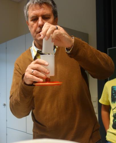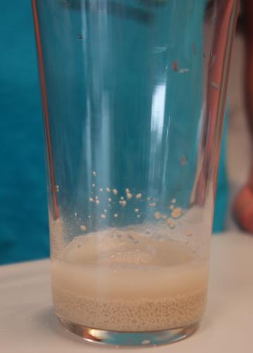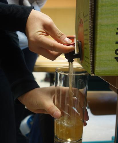 Jürgen gab den Germ hinzu, damit der Gärungsprozess beschleunigt wurde. Der Gärungsprozess fand in unserem Serverraum statt. Nach einigen Wochen ist der Süßmost zu Most vergoren. |
