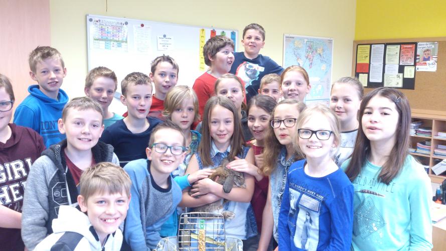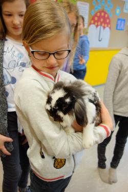 Hase Herbert besuchte am 23.3.2017 die 1a der NMS Lembach in Biologie. Seine Besitzerin Elena Hintringer hat uns einiges über ihn erzählt. Herbert ist ein 4-jähriges Löwenkopfzwergkaninchen mit Schlappohren. Alle durften Herbert streicheln und er war sehr brav. |