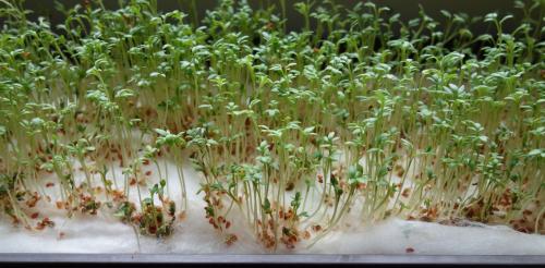 Nach guter Versorgung mit Licht, Wärme und mäßig Wasser gab es am Freitag, dem 10. 3. 2017, Jause mit Brot, Butter und gesunder Kresse. Um nur 50 Cent je Brot war die Pause eine gut schmeckende Stärkung.