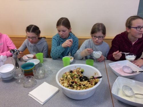 Am Montag, den 11. Dezember gab es in unserer Schule eine gesunde Jause. Der Elternverein Lembach bereitete uns eine leckere und gesunde Jause vor. Nur 2 Euro und man durfte sich an dem großen Buffet bedienen. Man konnte sich immer wieder Nachschub holen. Zwischen verschiedenen Aufstrichen, Gemüse, Obst, Obstsalat und Jogurt konnte man sich entscheiden. Es war sehr lecker und hat allen geschmeckt. Wir bedanken uns beim Elternverein für diese himmlisch - leckere Jause. |