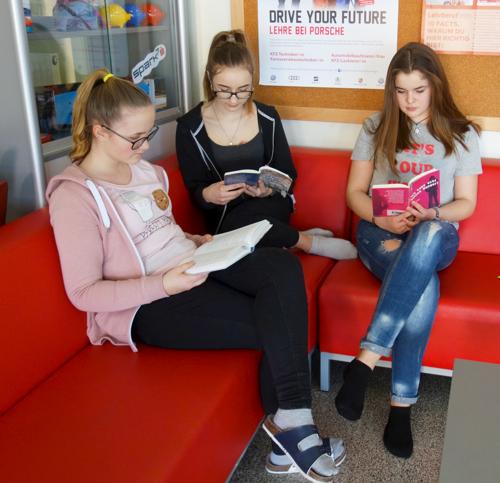,,Ich empfinde die rollende Lesestunde als sehr angenehm, weil man nach Lernstress wieder entspannen kann.“ (Lea R.) „In dieser Zeit ist es in der Schule mucksmäuschenstill und man kann sich voll und ganz auf das Lesen konzentrieren.“ (Veronique P.) „Mir gefällt die Lesestunde außerordentlich gut, da das Lesen in der Freizeit meistens zu kurz kommt. Da kann ich mich endlich auf ein Buch einlassen. ( Julia G.) |
