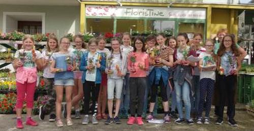 Blumengeschäft „Floristine“ Die Mädchen der 2. Klasse gingen mit Herrn Habringer in das Blumengeschäft „Floristine“. |