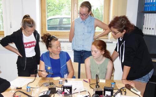Technikrallye der Mädchen (3a/3b) Am 12.6.2018 fuhren wir mit unserer BO-Lehrerin Frau Leitenbauer ins AMS Rohrbach. Dort warteten 4 Technik Stationen auf uns: