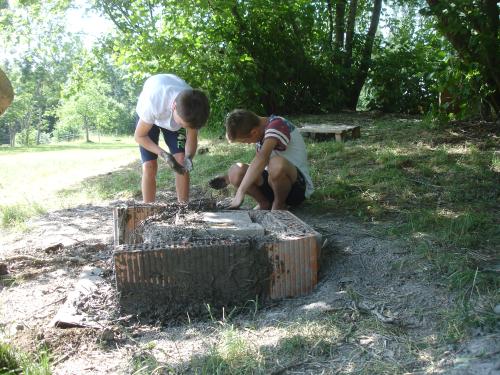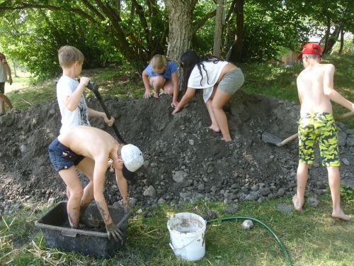 Anschließend bauten wir Untergrund für den Lehmofen. |