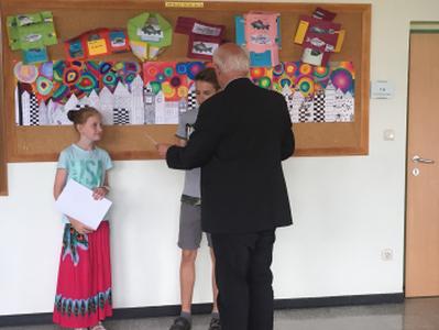 Pflichtschulinspektor Markus Gusenleitner überreicht im Beisein der Mütter die Urkunden an die erfolgreichen Schüler. |