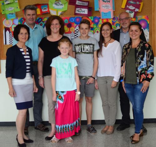 Frau Direktor Maria Lindorfer und die M-Lehrer Frau Gabriel und Herr Habringer freuen sich mit den Talenten. |