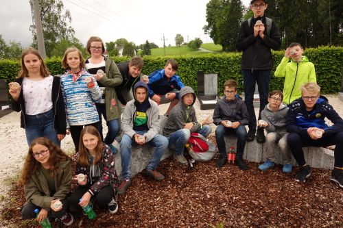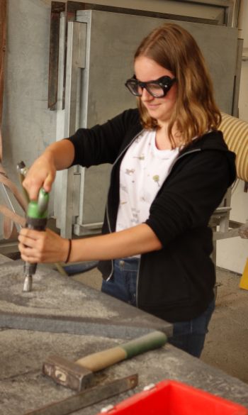 Außerdem konnten sie unter fachkundiger Anleitung durch die Steinmetzgesellen Sophia, Anna und Bernhard das Gravieren von Grabsteinen mit einem Sprengeisen ausprobieren. Nach diesem vollen Arbeitseinsatz wurden den fleißigen Jugendlichen Eis und erfrischende Getränke spendiert.